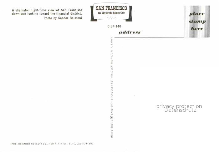 72638149 San Francisco California Financial district at night postalisch nicht gelaufen Erhaltung siehe scans [WerneD78] KatCode: 14140050000000
