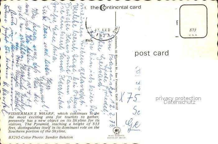 72484377 old postcard San Francisco California Fishermans Wharf postalisch gelaufen Erhaltung siehe scans KatCode: 14140050000000
