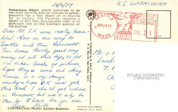 73130591 old postcard San Francisco California Fishermans Wharf postalisch gelaufen Erhaltung siehe scans [KathaD81] KatCode: 14140050000000