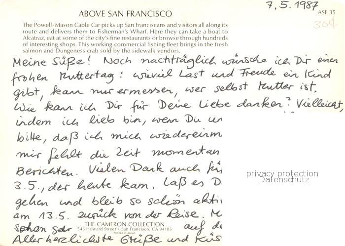 73766163 old postcard San Francisco California Fishermans Wharf Aerial view postalisch gelaufen Erhaltung siehe scans [WerneD78] KatCode: 14140050000000