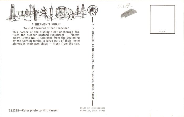 11491464 San Francisco California Fisherman’s Wharf Tourist Terminal Fischermen’s Grotto postalisch nicht gelaufen KatCode: 14140050000000