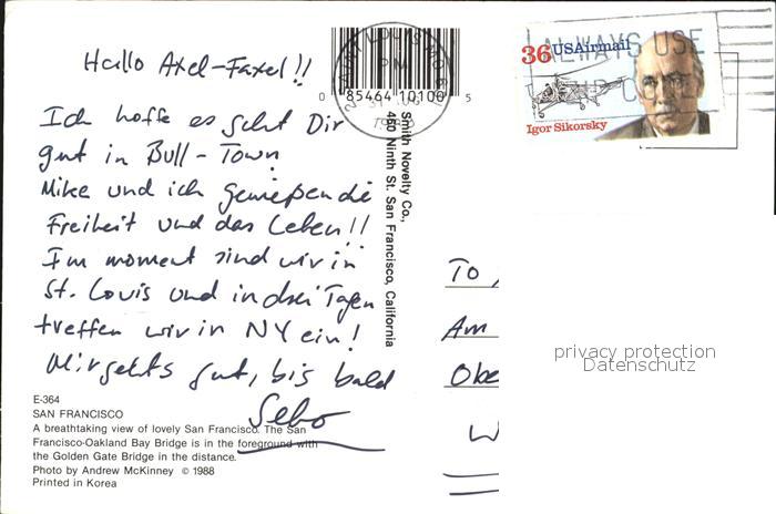 72499947 old postcard San Francisco California Fliegeraufnahme postalisch gelaufen Erhaltung siehe scans KatCode: 14140050000000