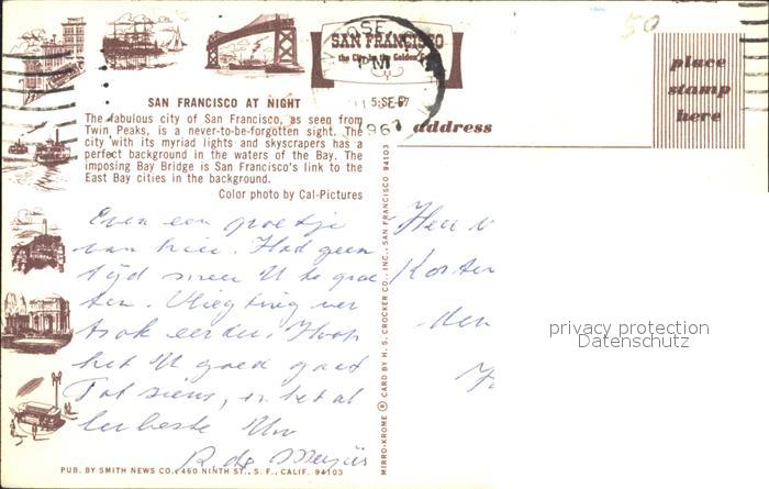 72285134 San Francisco California Fliegeraufnahme bei Nacht postalisch nicht gelaufen Erhaltung siehe scans KatCode: 14140050000000