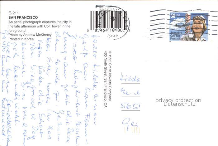 72486713 old postcard San Francisco California Fliegeraufnahme Coit Tower postalisch gelaufen Erhaltung siehe scans KatCode: 14140050000000