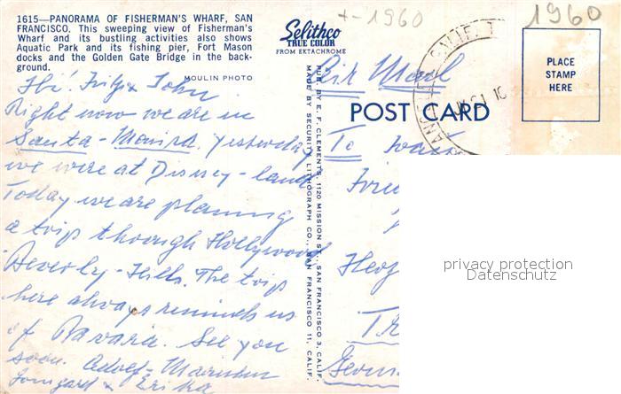 72928504 old postcard San Francisco California Fliegeraufnahme Fishermans Wharf Golden-Gate-Bridge postalisch gelaufen Erhaltung siehe scans [LiesaD40] KatCode: 14140050000000