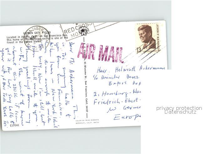 72389964 old postcard San Francisco California Fliegeraufnahme Golde Gate Fields postalisch gelaufen Erhaltung siehe scans KatCode: 14140050000000