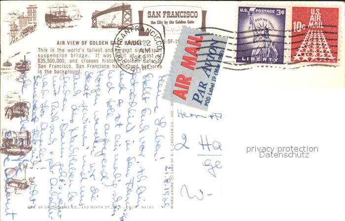 72247005 old postcard San Francisco California Fliegeraufnahme Golden Gate Bridge postalisch gelaufen Erhaltung siehe scans KatCode: 14140050000000