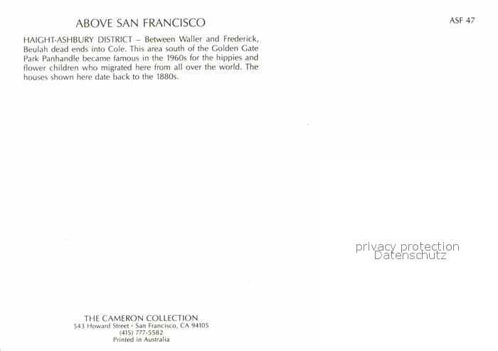 72650554 San Francisco California Fliegeraufnahme Haight-Ashbury District postalisch nicht gelaufen Erhaltung siehe scans [LiesaD40] KatCode: 14140050000000