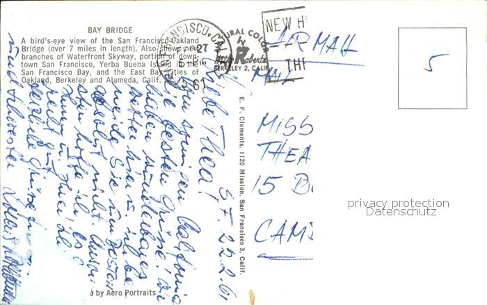 72600664 old postcard San Francisco California Fliegeraufnahme mit Bay Bridge postalisch gelaufen Erhaltung siehe scans [LiesaD40] KatCode: 14140050000000