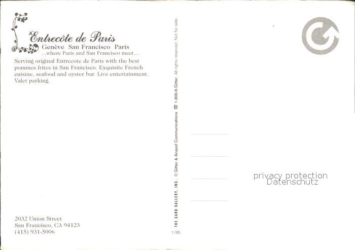 72332374 San Francisco California French Restaurant Entrecote de Paris postalisch nicht gelaufen Erhaltung siehe scans KatCode: 14140050000000