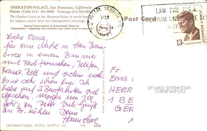 72161557 old postcard San Francisco California Garden Court at Sheraton Palace postalisch gelaufen Erhaltung siehe scans KatCode: 14140050000000