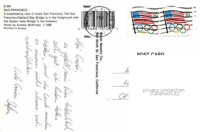 72715695 old postcard San Francisco California Golden Gate Bridge postalisch gelaufen Erhaltung siehe scans [KathaD79] KatCode: 14140050000000
