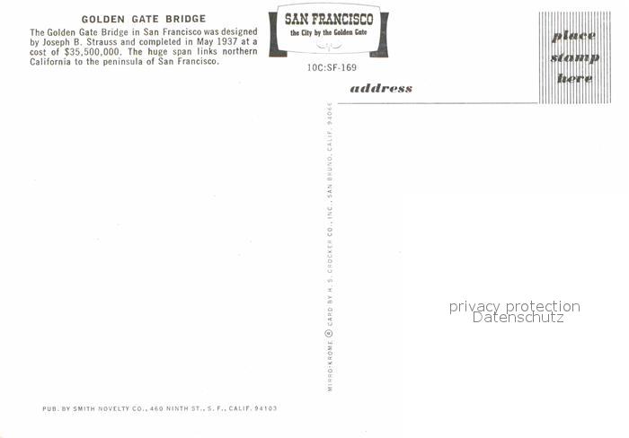 72692642 San Francisco California Golden Gate Bridge postalisch nicht gelaufen Erhaltung siehe scans [NatalD47] KatCode: 14140050000000