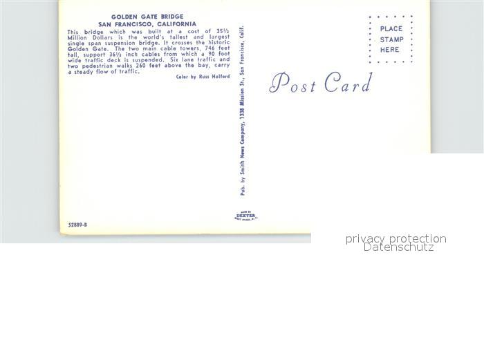 72533027 San Francisco California Golden Gate Bridge postalisch nicht gelaufen Erhaltung siehe scans [LiesaD40 kt094box] KatCode: 14140050000000