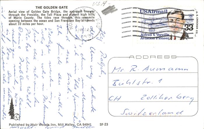 11491574 old postcard San Francisco California Golden Gate Bridge aerial view postalisch gelaufen Erhaltung siehe scans KatCode: 14140050000000