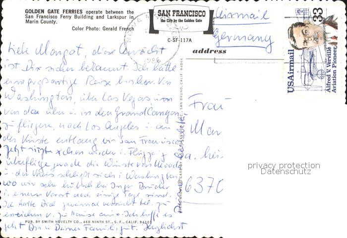 72499975 old postcard San Francisco California Golden Gate Ferries postalisch gelaufen Erhaltung siehe scans KatCode: 14140050000000