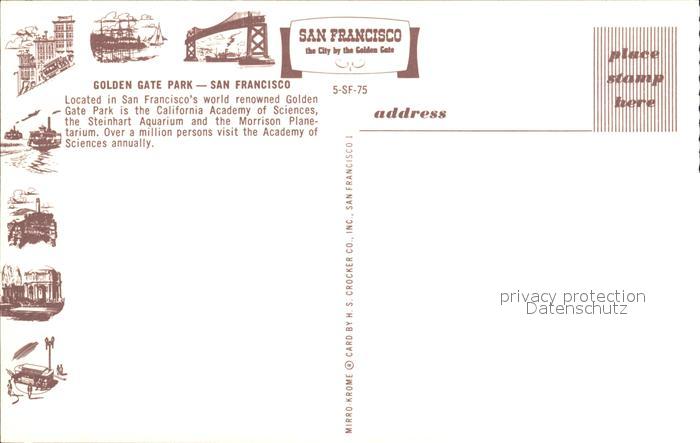 72291520 San Francisco California Golden Gate Park postalisch nicht gelaufen Erhaltung siehe scans KatCode: 14140050000000