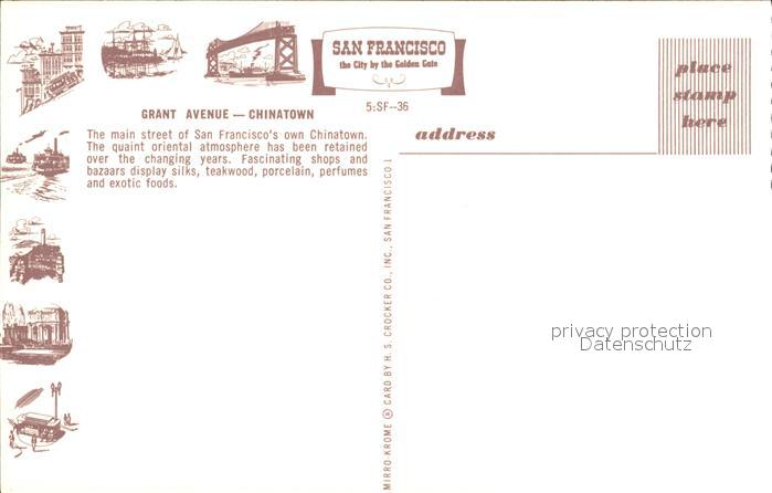 72291521 San Francisco California Grant Avenue Chinatown postalisch nicht gelaufen Erhaltung siehe scans KatCode: 14140050000000