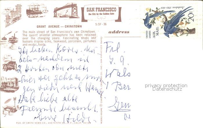 72231080 old postcard San Francisco California Great Avenue Chinatown postalisch gelaufen Erhaltung siehe scans KatCode: 14140050000000