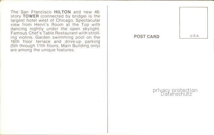 72118746 San Francisco California Hilton Hotel postalisch nicht gelaufen Erhaltung siehe scans KatCode: 14140050000000