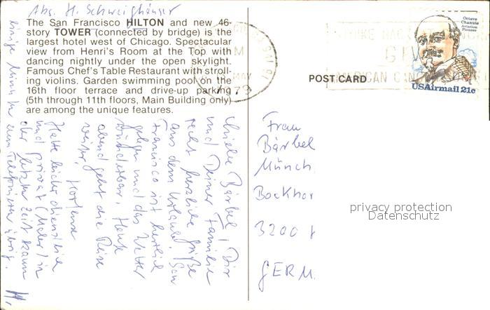 71940894 old postcard San Francisco California Hilton Hotel Tower Restaurant Skyscraper postalisch gelaufen Erhaltung siehe scans KatCode: 14140050000000