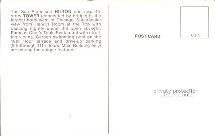 71941892 San Francisco California Hilton Hotel Tower Restaurant Skyscraper postalisch nicht gelaufen Erhaltung siehe scans KatCode: 14140050000000