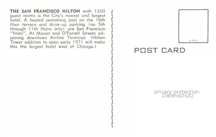 72908190 San Francisco California Hilton Hotel postalisch nicht gelaufen Erhaltung siehe scans [LiesaD40] KatCode: 14140050000000