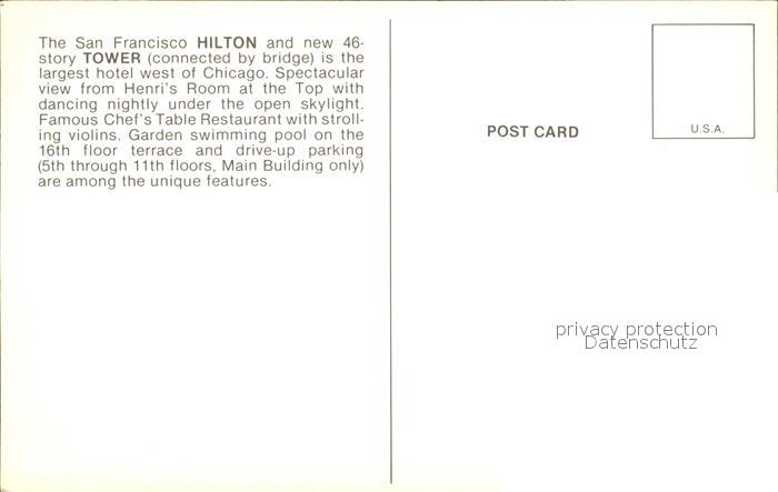 72092672 San Francisco California Hilton postalisch nicht gelaufen Erhaltung siehe scans KatCode: 14140050000000