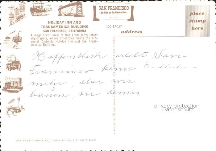 71909103 San Francisco California Holiday Inn Transamerica Building postalisch nicht gelaufen Erhaltung siehe scans KatCode: 14140050000000