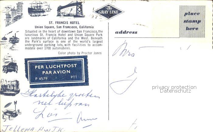 71953211 old postcard San Francisco California Hotel St. Francis postalisch gelaufen Erhaltung siehe scans KatCode: 14140050000000