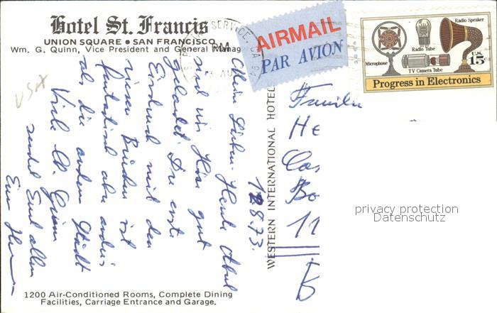 72249365 old postcard San Francisco California Hotel St Francis postalisch gelaufen Erhaltung siehe scans KatCode: 14140050000000
