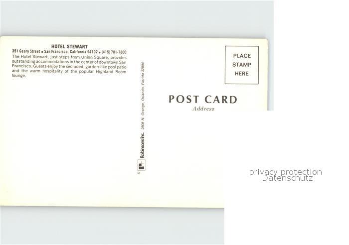 72133574 San Francisco California Hotel Stewart postalisch nicht gelaufen Erhaltung siehe scans KatCode: 14140050000000