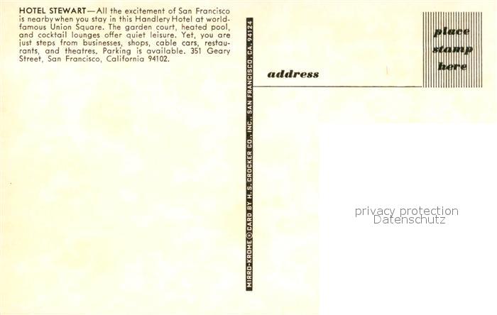 73333538 San Francisco California Hotel Stewart postalisch nicht gelaufen Erhaltung siehe scans [FriedD77] KatCode: 14140050000000