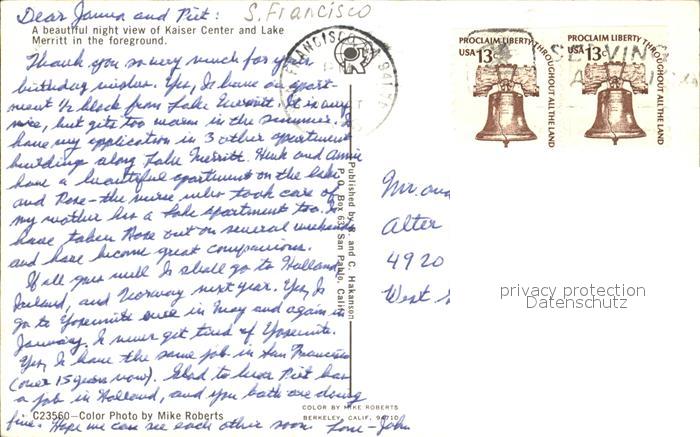 72461727 old postcard San Francisco California Kaiser Center and Lake Merritt postalisch gelaufen Erhaltung siehe scans KatCode: 14140050000000