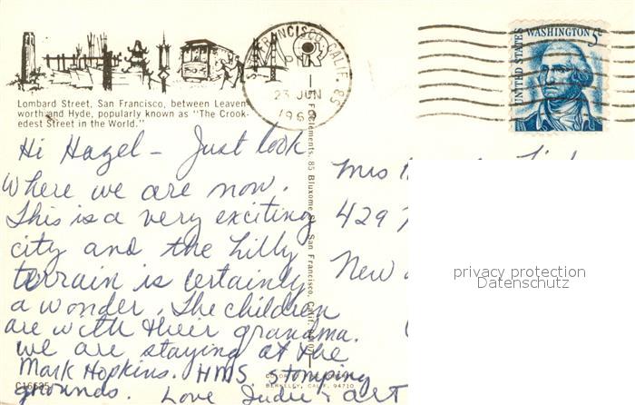 73667357 old postcard San Francisco California Lombard Street postalisch gelaufen Erhaltung siehe scans [WerneD78] KatCode: 14140050000000
