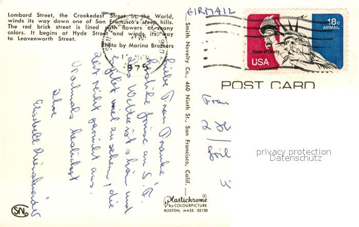 73573221 old postcard San Francisco California Lombard Street postalisch gelaufen Erhaltung siehe scans [FriedD77] KatCode: 14140050000000