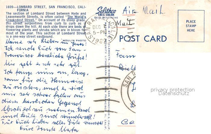 73743304 old postcard San Francisco California Lombard Street postalisch gelaufen Erhaltung siehe scans [WerneD78] KatCode: 14140050000000
