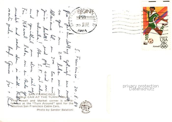 73162139 old postcard San Francisco California Market Corner Cable Cars Turntable postalisch gelaufen Erhaltung siehe scans [LiesaD40] KatCode: 14140050000000
