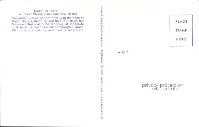 71925846 San Francisco California Maurice Hotel postalisch nicht gelaufen Erhaltung siehe scans KatCode: 14140050000000