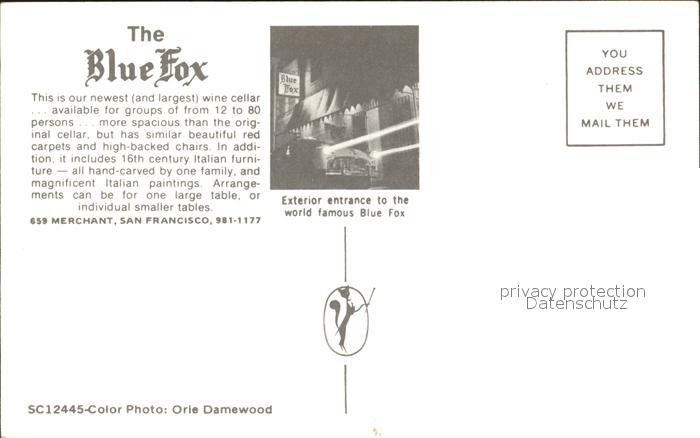 72092665 San Francisco California Merchant The Blue Fox postalisch nicht gelaufen Erhaltung siehe scans KatCode: 14140050000000