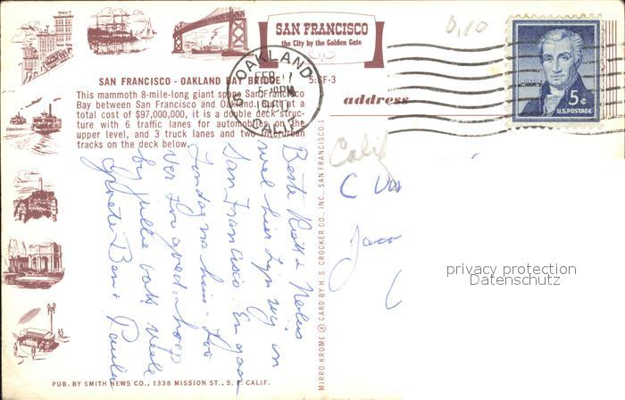 72396954 old postcard San Francisco California Oakland Bay Bridge postalisch gelaufen Erhaltung siehe scans KatCode: 14140050000000