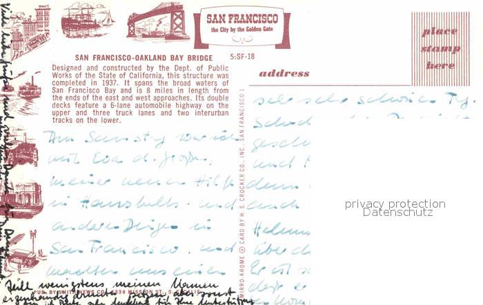 72637667 San Francisco California Oakland Bay Bridge postalisch nicht gelaufen Erhaltung siehe scans [FriedD77] KatCode: 14140050000000