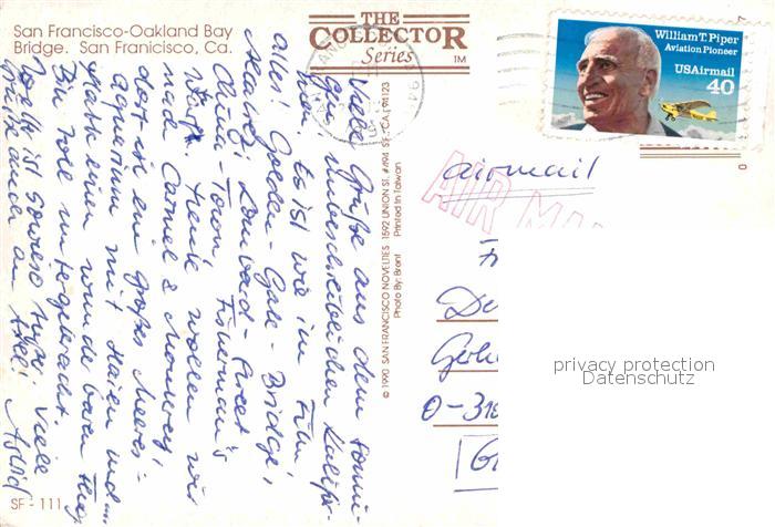 72792645 old postcard San Francisco California Oakland Bay Bridge at night postalisch gelaufen Erhaltung siehe scans [FriedD77] KatCode: 14140050000000