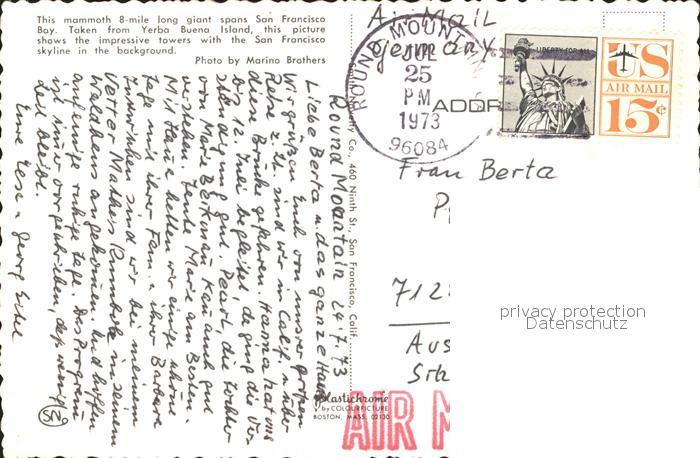 72334037 old postcard San Francisco California Oakland Bay Bridge Francisco Bay Skyline postalisch gelaufen Erhaltung siehe scans KatCode: 14140050000000