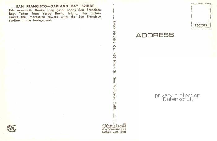 72747264 San Francisco California Oakland Bay Bridge with Skyline postalisch nicht gelaufen Erhaltung siehe scans [LiesaD40] KatCode: 14140050000000