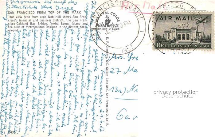 72893183 old postcard San Francisco California Panorama postalisch gelaufen Erhaltung siehe scans [KathaD81] KatCode: 14140050000000