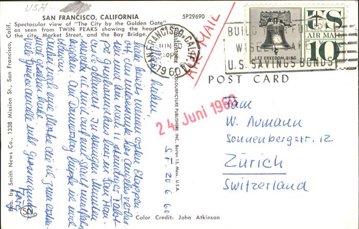 11491576 old postcard San Francisco California Panorama seen from Twin Peaks Market Street Bay Bridge postalisch gelaufen Erhaltung siehe scans KatCode: 14140050000000
