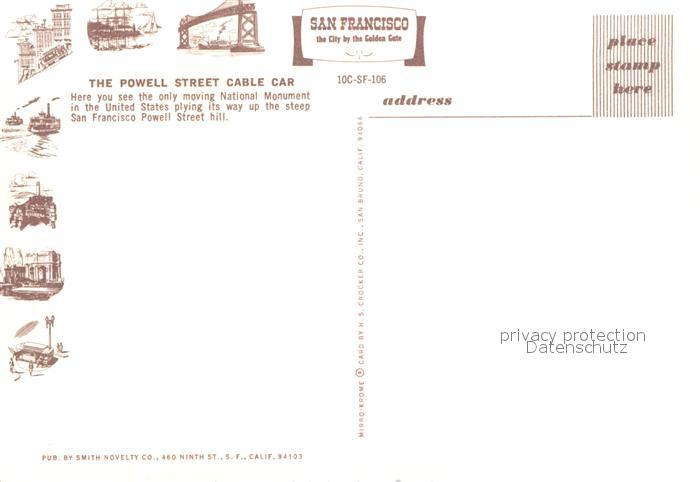 72948672 San Francisco California Powell Street Cable Car postalisch nicht gelaufen Erhaltung siehe scans [NatalD47] KatCode: 14140050000000
