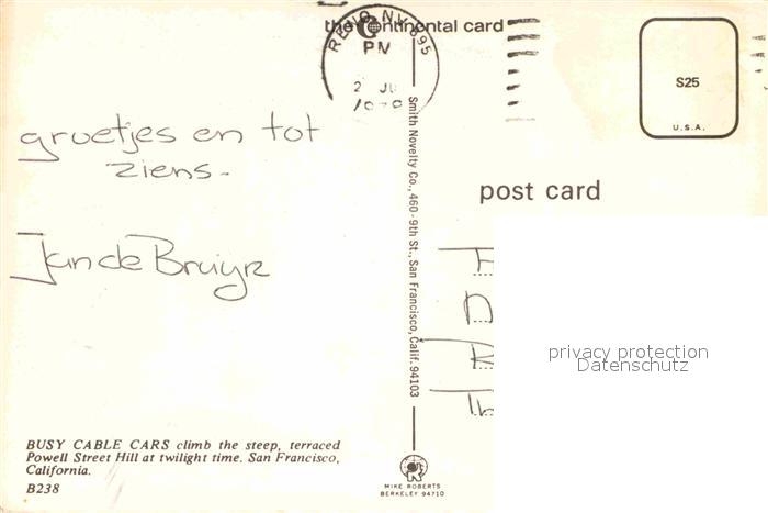 72857331 old postcard San Francisco California Powell Street Cable Cars postalisch gelaufen Erhaltung siehe scans [NatalD47] KatCode: 14140050000000