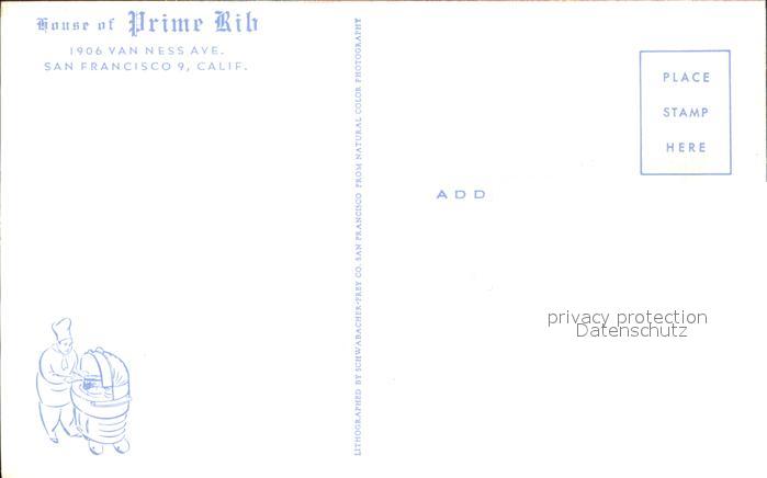 72275231 San Francisco California Restaurant Bar Houes of Prime Rib postalisch nicht gelaufen Erhaltung siehe scans KatCode: 14140050000000